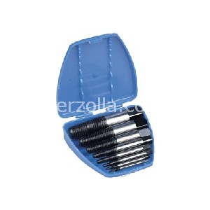 In acciaio al cromo-vanadioTipo conico con filettatura sinistra automordente - Per elevate prestazioniAdatti per estrarre viti spezzate con filettatura destra, si agisce eseguendo prima un foro con una punta, quindi inserire l’estrattore e con l‘aiuto di un giramaschi ruotare in senso antiorarioC 3294/1 - - Esecuzione con gambo rettificato - 10 pz.C 3294/3 - - Esecuzione interamente brunita - 10 pz.Serie di estrattori in astuccioC 3294/2 - C 3294/4 -