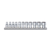 Assortimento di 10 chiavi a bussola poligonali e 2 accessori in cassetta di lamiera