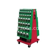 Carrello porta contenitori Dettagli CARRELLO CON 80 CONTENITORI In lamiera elettrosaldata verniciata a forno Colore rosso RAL 3002 Per esigenze di magazzinaggio mobile Nel carrello possono ess...