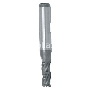 Fresa a 3-4 taglienti serie media in HSS-E-PM acciaio super rapido al cobalto, trattamento superficiale in Alcrona, fresa per sgrossatura rompitruciolo a profilo piatto a passo grosso HRA, angolo elica 35°, codolo cilindrico con cava di bloccaggio 1835B,