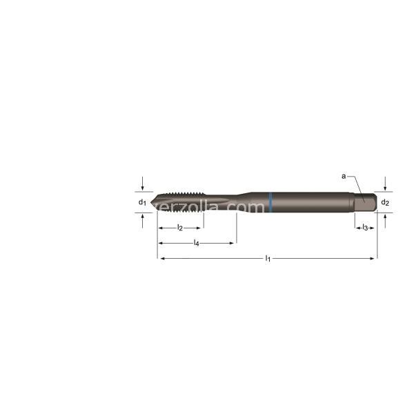 Maschio a macchina imbocco corretto filettatura metrica ISO grossa, DIN 371≤Ø10 DIN376≤Ø12, tolleranza 6H, per fori passanti, profondità 2.5XD, in acciaio supr-rapido da polveri HSS-E-PM,forma imboccoB3,5-5, rotazione destra,senza trattamento superficiale