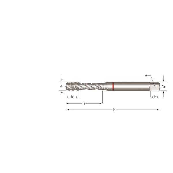 Maschi a macchina, scanalature elicoidali 45°, filettatura metrica ISO grossa, DIN 371≤Ø10 DIN376≥Ø376, tolleranza H6, per foro cieco, profodnità 2.5XD, in acciaio super rapido al cobalto da polveri, forma imbocco C2-3, rotazione destra.