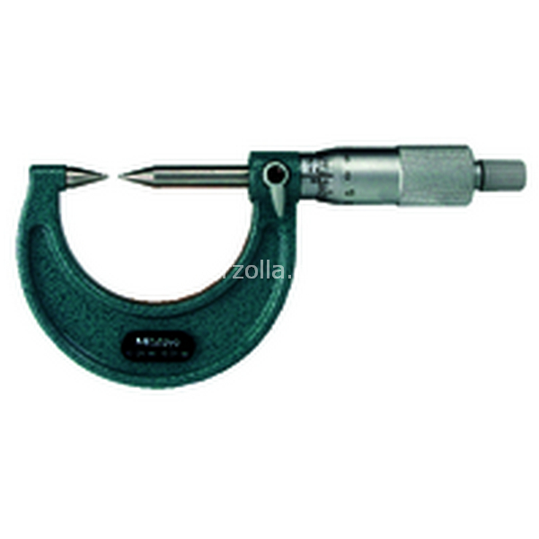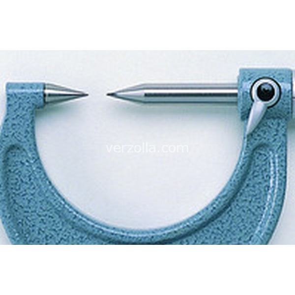 | Features | • Pointed spindle and anvil for measuring the web thickness of drills, small grooves, keyways, and other hard-to-reach dimensions.• 15 degree and 30 degree measuring points are available.• The measuring points (carbide-tllied) have approximately 0.3mm radius.• With Ratchet Stop for constant force. |