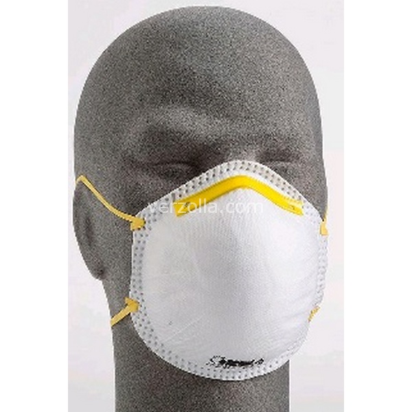 FFP1 Facciali filtranti monouso a conchiglia, in tessuto non tessuto, con stringinaso e due elastici di trattenuta. Facciale filtrante per protezione da polveri a bassa tossicità, aerosol solidi e/o liquidi in concentrazioni fino a 4,5 x TLV (valore limit
